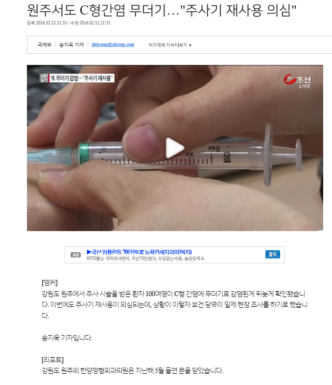 종종 주사기 재사용으로 인해 발생한 C형 간염에 대한